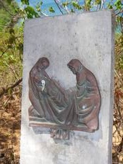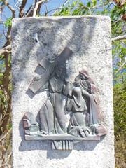 La croix implantée sur le Morne à Cointe. L'Anse et la petite plage au pied du Pain de Sucre.