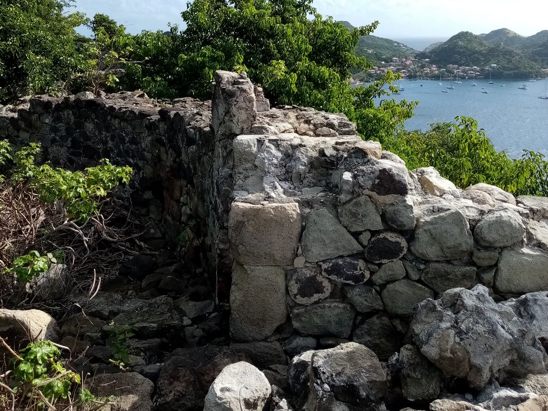 Le lendemain, nous faisons une sortie sur l'îlet pour monter jusqu'aux ruines du fort Joséphine. Une petite plage bordée de mancenilliers permet de débarquer. Un petit sentier bétonné traverse la forêt sèche. Les cabrits sont méfiants et s'enfuient à notre approche. Après 20 mn de grimpette nous arrivons au sommet de la colline.