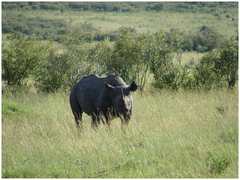 Non loin du lac Nakuru, un rhinocéros blanc va s'abreuver,
