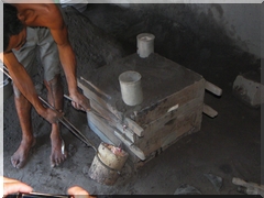Dans la cour les pièces en aluminium sont fondues dans des fours en briques.