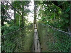 Au centre du jardin un chemin de passerelles permet une visite de la canopée. Une belle balade dans les arbres qui nous amène au sommet de majestueux mahoganys et qui montre le jardin sous un autre angle. Il ne faut pas oublier de lever les yeux pour voir les plantes qui poussent à cette hauteur ainsi que les lianes trompettes.