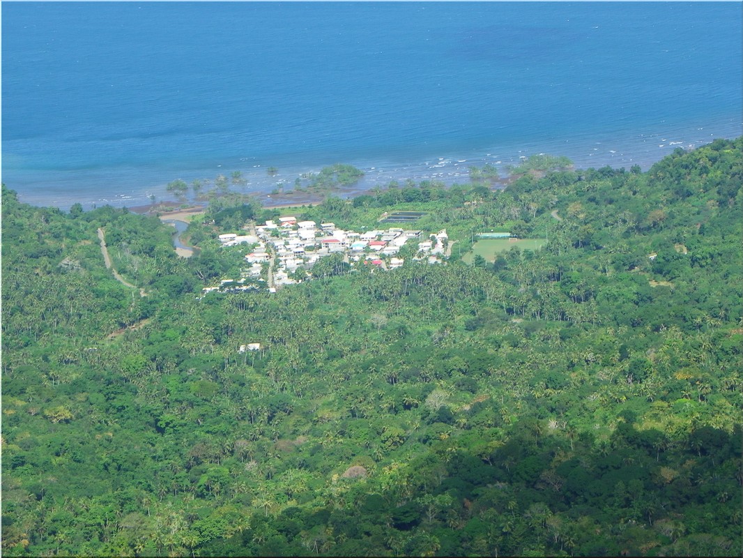 Le Mlima Choungui domine le sud de l'île de Mayotte. La face nord vue des bourgs de Chirongui et Tsinkoura. Le point de départ en bordure du CCT11.