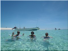 M'tsamboro, escale sur le banc de sable des îles Choazil. Les pêcheurs de M'tasahara et Hamjago font volontier la navette pour les touristes. Baignade dans les eaux limpides du lagon.