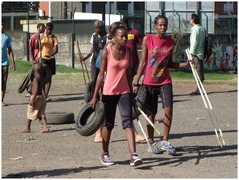Ce sont les enfants, les filles d'abord puis les garçons qui s'élancent comme un vol de moineaux,