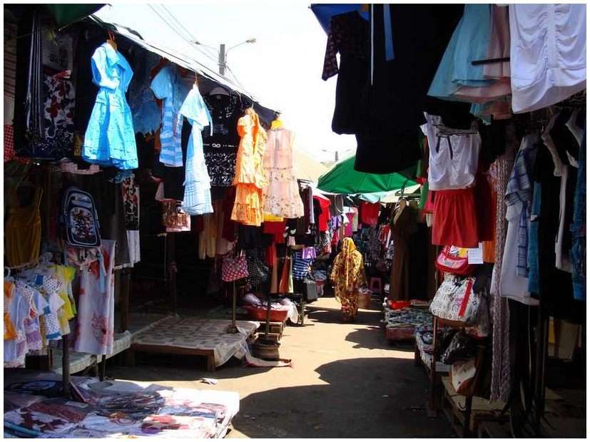 Aux abords et sous le marché couvert les marchandes souvent allongées vendent des produits d'importés de Dubaï ou de Chine.