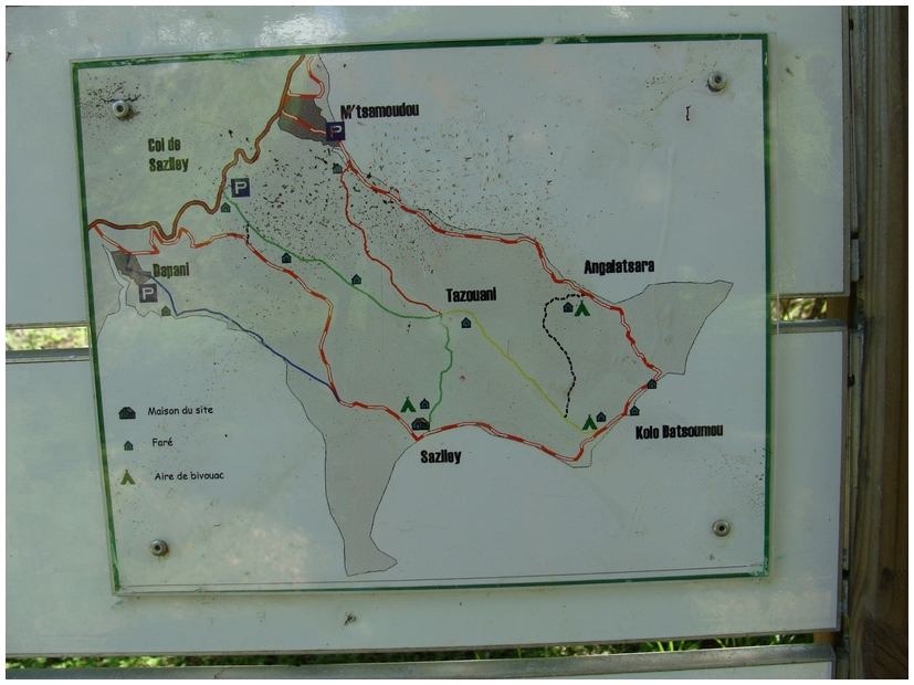 A pieds, on peut faire le tour de la pointe Saziley en suivant le GR du village de M'tsamoudou vers Dapani, ou dans l'autre sens.