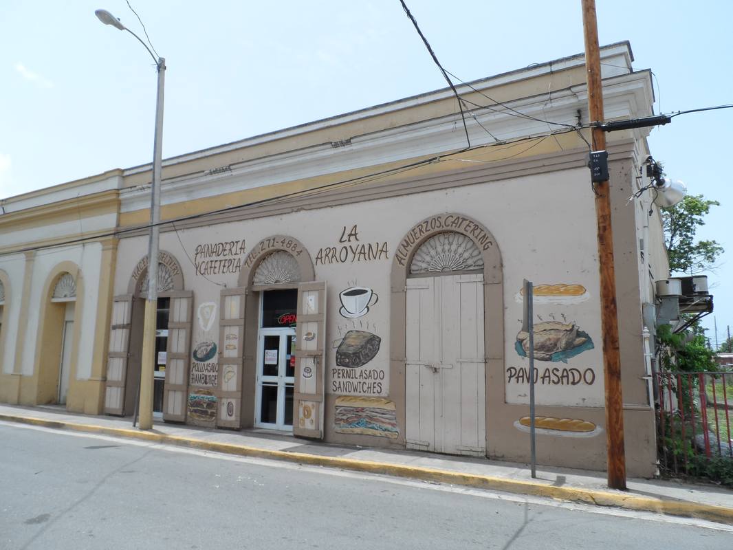 Nouveau membre d'équipage.Cotonniers au bord de la route, l'église et la place centrale d'Arroyo.