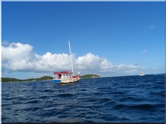 En face de Petite Martinique (Grenade) l'île de Petit Saint Vincent (Saint Vincent).