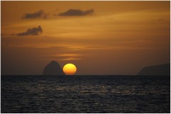 Coucher de soleil sur le diamant, pêcheurs et leurs casiers, grosse pince (?).