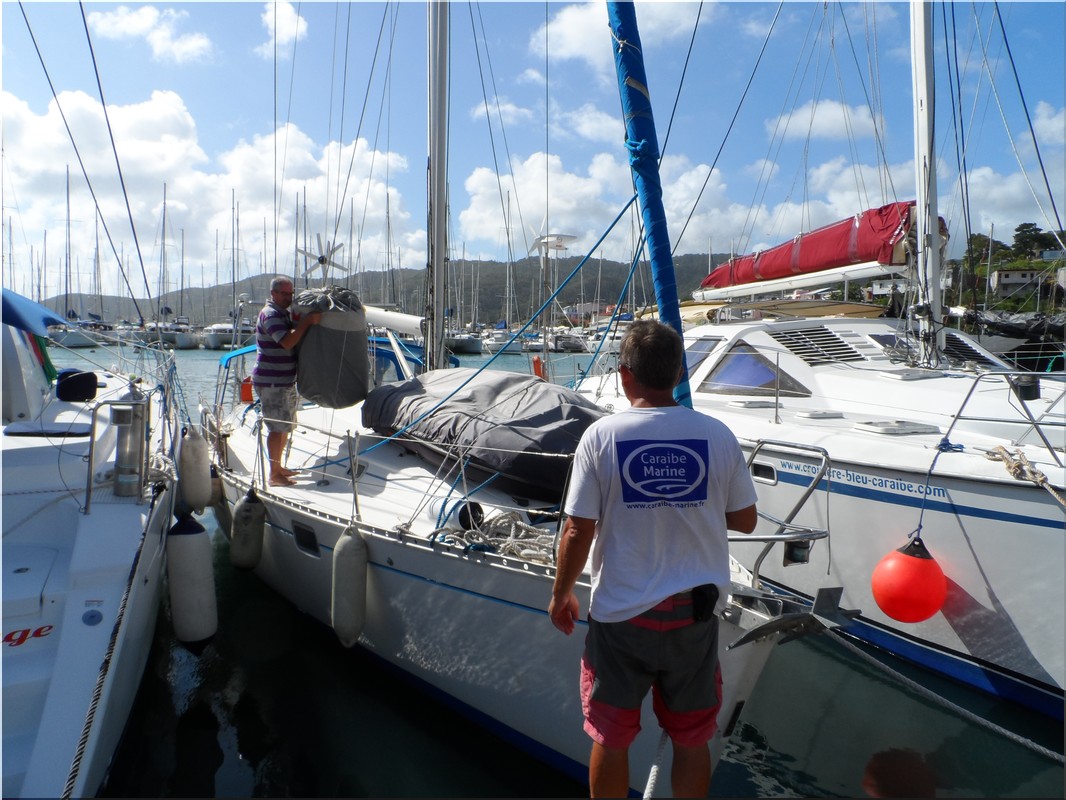 caraïbe gréement qui vont procéder à une vérification des voiles et des haubans. La manœuvre